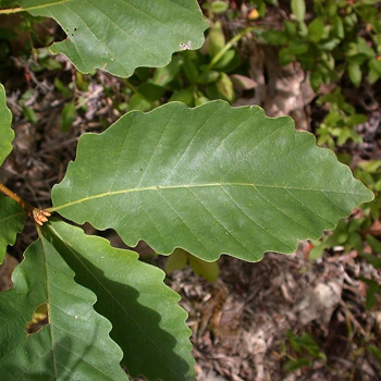 Deciduous tree to 30 m. Bark dark, thick, deeply furrowed. Leaves with rounded teeth, sparsely hairy beneath. Cap of acorn is hemispheric with comparatively few scales; nut dark brown.