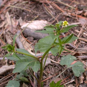 Biennial or perennial herb. Basal leaves mostly crenate but with a few that are lobed or divided, more or less cordate at the base; cauline leaves sessile or nearly so, with 3-5 divisions. Flowers yellowish, 5-merous; petals shorter than sepals.