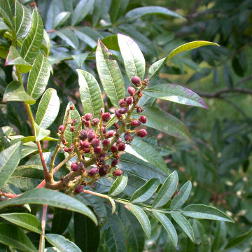 Shrub or small tree. Leaves shiny above, pinnately compound; leaflets 7-21, entire or with a few shallow teeth; rachis winged between each pair of leaflets. Fruit red, slightly flattened, pilose.