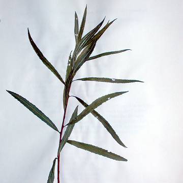 Multi-stemmed, deciduous shrub 1.5-3 m tall, occasionally larger. Twigs slender, brown or reddish-brown, sericeous when young. Leaves alternate, the blade mostly more than 10 times as long as wide; leaf margins irregularly serrate, with more than 3 sharp or glandular teeth per cm, except occasionally towards the base; young leaves linear, with irregular teeth; petioles eglandular at the summit. Stamens mostly 2, pubescent or glabrous, the filaments loosely pubescent, at least below the middle; aments borne on short, leafy peduncles more than 2 cm long; ovaries and capsules gray-hairy to glabrescent; floral bracts pale yellowish or greenish, deciduous after anthesis, mostly more than 2 mm long.