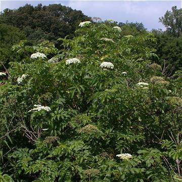 Deciduous shrub to 3 m. Leaves pinnate compound; leaflets sharply serrate, elliptic. Stems green, become pale brown and woody with age; pith white. Flowers in compound panicles; petals 5, white; stamens 5. Fruit a purple-black berry.