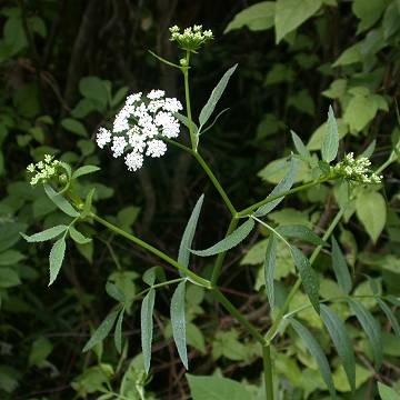Although the roots of this plant are reputed to be edible, its resemblance to Water Hemlock (Cicuta maculata) makes this a dangerous proposition. It is generally wise to leave all aquatic members of this family alone. Additionally, the poison hemlock of antiquity, Conium maculatum L., has naturalized widely in the U.S. and has similar flowers but more finely dissected leaves; it occurs as a weed in moist to dry, disturbed habitats.