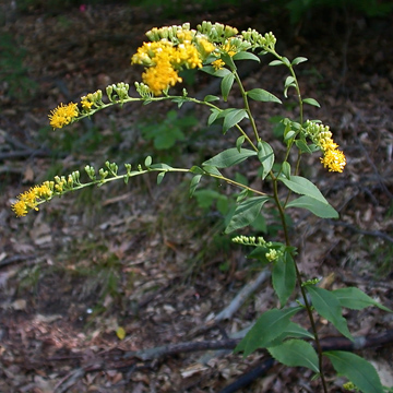 Herbaceous perennial to 1.5 m from a stout, branched caudex, without creeping rhizomes; stems terete or striate, glabrous below the inflorescence; leaves basally disposed, glabrous or slightly scaberulous above, toothed to subentire, the larger ones 10-30 cm long and 3-12 cm wide, the blade broadly elliptic or ovate, abruptly tapered to the long petiole; inflorescence paniculiform, with recurved-secund branches, sometimes elongate and narrow, more often broad and open, with long divergent branches; involucres 3-7 mm; involucral bracts acute or obtuse; rays 2-8; disk flowers 8-20; cypselae usually glabrous in northern plants.