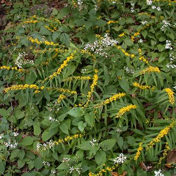 Acer saccharum, Actaea pachypoda, Bortrychium virginianum, Fraxinus americana, Geranium maculatum, Hepatica acutiloba, Podophyllum peltatum, Prunus virginiana, Quercus rubra, Smilacina racemosa, Tilia americana, Vitis riparia. Other associate include Asimina triloba, Cornus florida, Erythronium americanum, Euonymus obovatus, Fagus grandifolia, Lindera benzoin, Polygonatum pubescens, Viburnum acerifolium. On shaded dune slopes (and rocky slopes) with Aquilegia canadensis, Aralia nudicaulis, Hamamelis virginiana, Prenanthes alba, Sanguinaria canadensis, Sassafras albidum, Taxus canadensis, Trillium flexipes, Tsuga canadensis, Uvularia grandiflora.