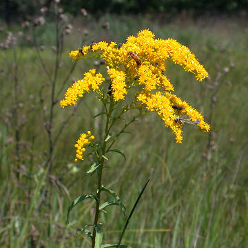 Very much like S. canadensis but mostly glabrous below the inflorescence. Also called Smooth Goldenrod or Late Goldenrod, it is synonymous with S. serotina.