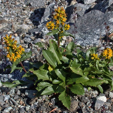 Herbaceous perennial from a branched caudex; stems 5-35 cm, hirtellous-puberulent in the inflorescence; leaves crowded near the base, the larger ones mostly oblanceolate or spatulate to elliptic, rounded to acute, toothed; inflorescence corymbiform or elongate and leafy-bracteate in larger plants; involucres 5-9 mm, glabrous or finely atomiferous-glandular; involucral bracts firm, imbricate, obtuse or somewhat acute; flowers 30-50 per head; rays 10-13; achenes hairy.