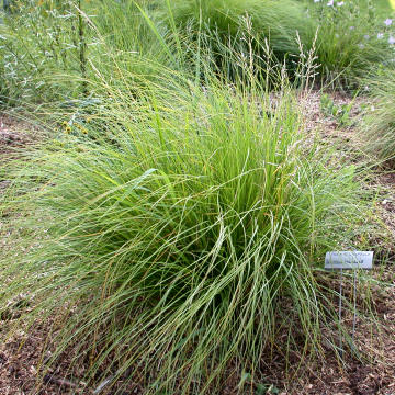 The heads smell like buttered popcorn when in anthesis. A highly ornamental grass that is slow to establish but long-lived. The seeds roll easily.
