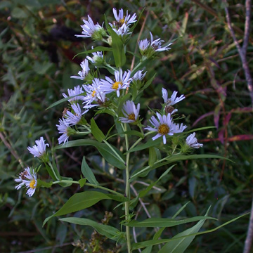 Herbaceous perennial, colonial by long creeping rhizomes; stem and branches puberulent in lines above, glabrous or sparingly hispid below the inflorescence; leaves rather crowded, especially upwards, firm, often shining, entire or nearly so; rays pale blue or lavender, sometimes white.