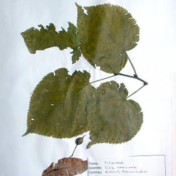 Also called Basswood. The cultivar 'Redmond', which has a pyramidal shape, is shown in most of these images. The flowers smell very nice and are somewhat showy. Dried flowers can be used to make tea and the unopened leaf buds are mucilaginous and edible.