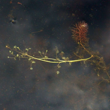 I sometimes find this species occurring in pools as large vegetative mats on wet peat in northern white cedar swamps, otherwise it is usually found in shallow water. I have never found it in flower but it is easy to identify vegetatively because it produces leaves and bladders on separate branches.
