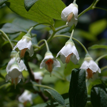 Deciduous shrub to 1.5 m, glabrous to densely hairy; Leaves oblong or elliptic to obovate, to 10 cm long, acute or acuminate, entire; flowers in racemes or panicles; corolla campanulate, open even in bud, greenish-white or purple-tinged, 4-6 mm, 5-lobed nearly to the middle; stamens exsert; fruit yellowish or greenish to green-blue, to 1 cm.