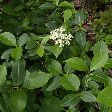 There are two recognized varieties of this species, var. nudum (possumhaw) and var. cassinoides (witherod). The latter is a more northern species than the former with a range that extends further west. Gleason and Cronquist point out that there is much overlap in the characteristics of these two varieties, which is probably why they are no longer treated as distinct species. I had to look up what a "withe" is; apparently a band or rope made from twisted twigs or stems.