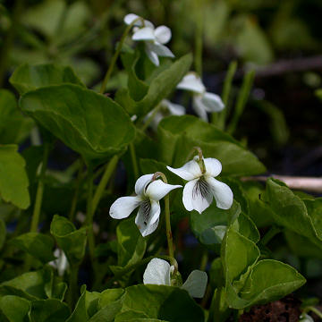 Flowers often fragrant. Grows from slender rhizome. The USDA plants database lists var. palustriformis A. Gray as being native to the Chicago region, while Swink and Wilhelm would call this plant V. incognita Brainard, or hairy white violet. This variety or species has thinly to densely bearded lateral petals and is considered endangered in Illinois.